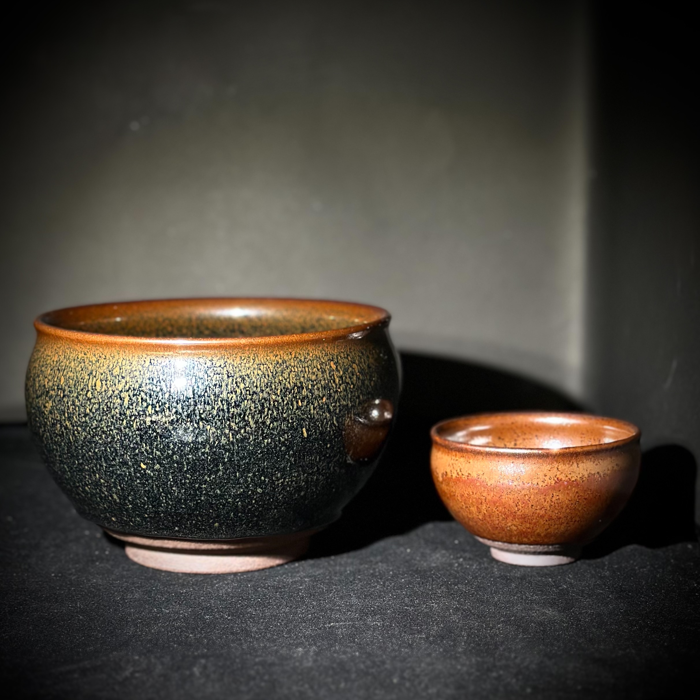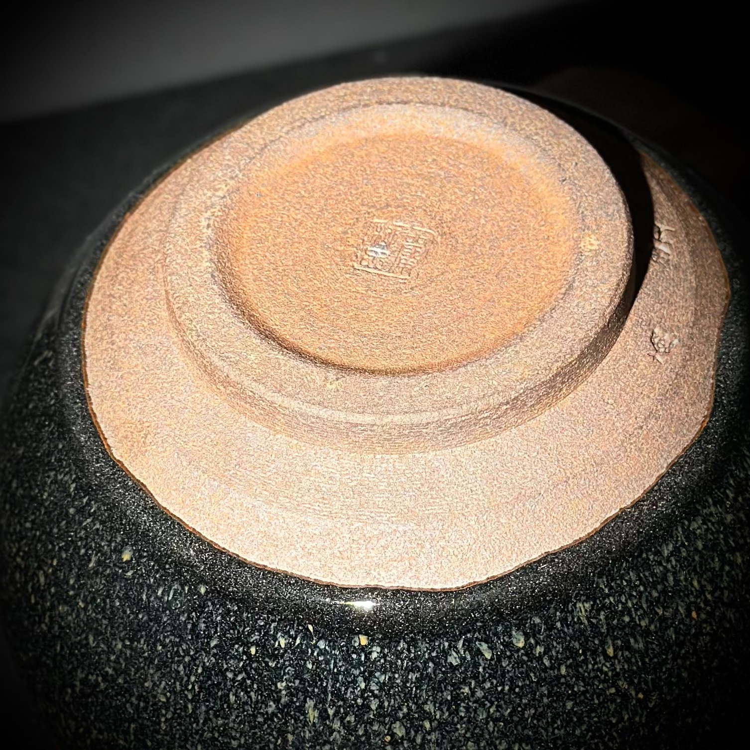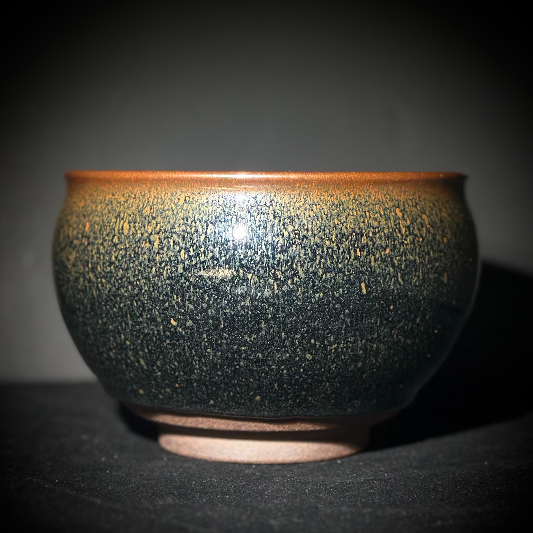 如雨滴潤染山石,釉色自上而下由鐵銹轉入青黑