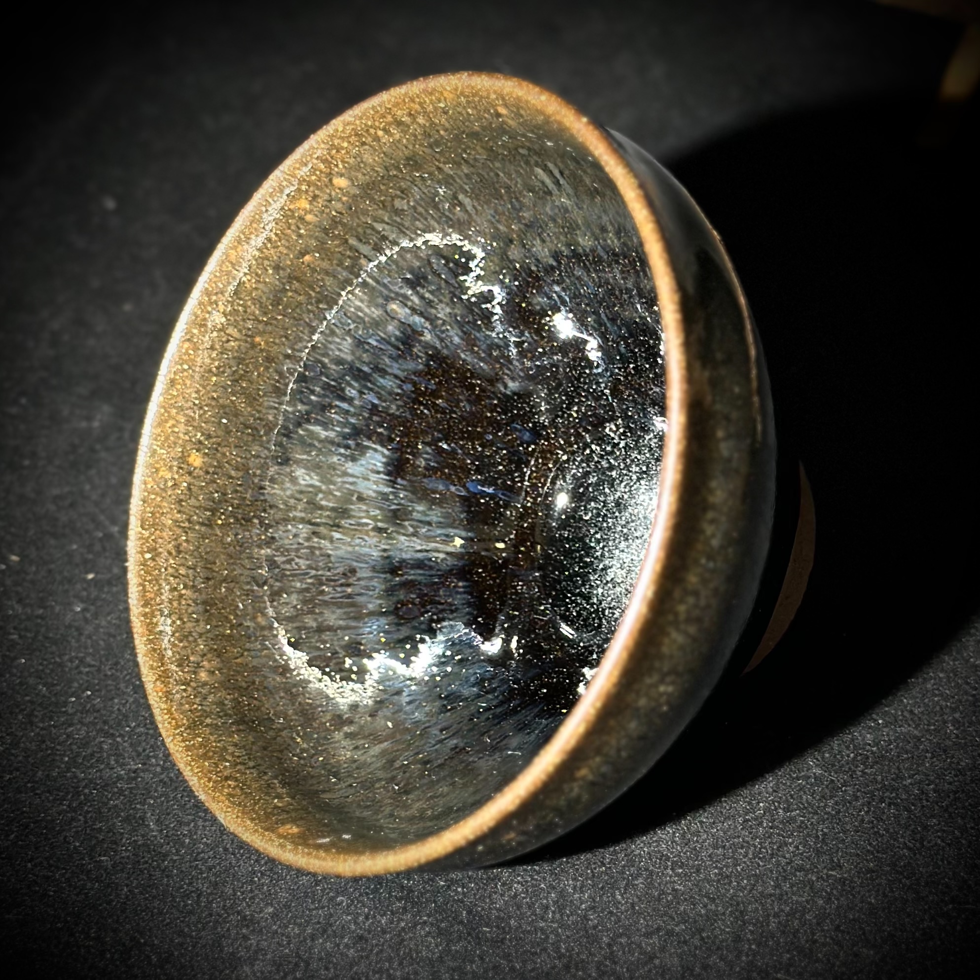 隨光移動時,釉面微閃,斑紋密而不亂